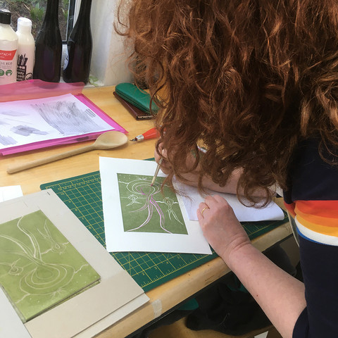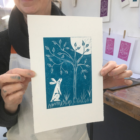 My linocut workshops are all held in my York print studio. I teach in small groups of no more than four people, so that everyone gets lots of one to one tuition.