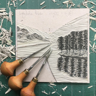 But I did it, creating a new linocut print of Langdale Pikes from Blea Tarn and Striding Edge, Helvellyn to sit alongside my new Swaledale II and Malham Cove linocut prints and a new colourway of Ennerdale Water.